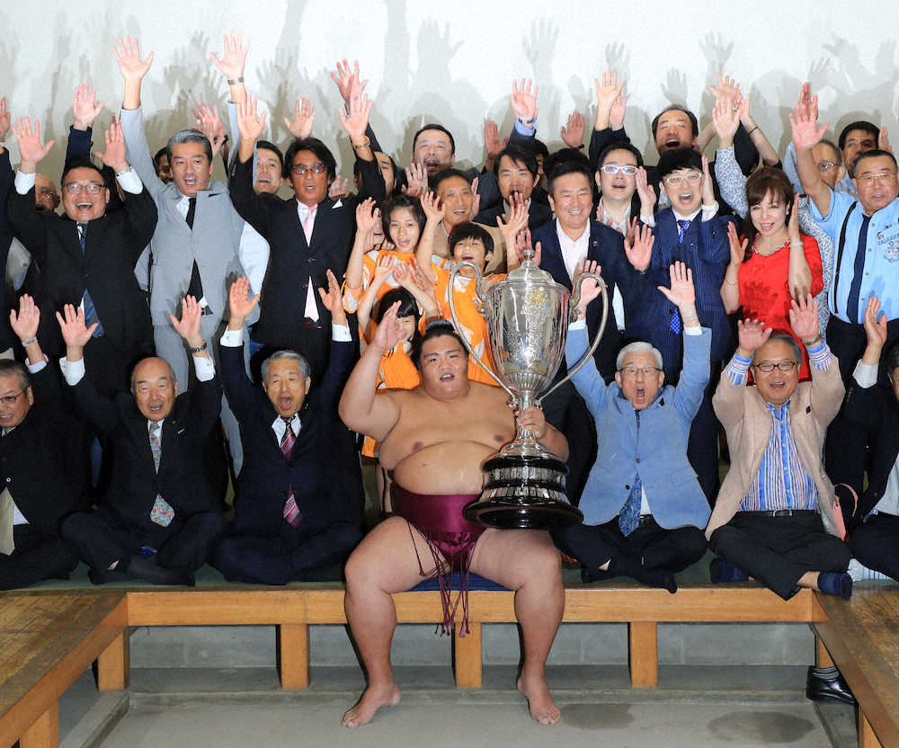 「最高」。支度部屋に戻ると、そう切り出した。「いろんな人の顔が浮かんだ。足がすぐに出たので大丈夫かと思ったが、みなさんの拍手を聞いて優勝するぞと思った」。花道では付け人と抱き合って喜びをかみしめた。感謝の思いを結果で出し、支度部屋では涙がこぼれそうになった。