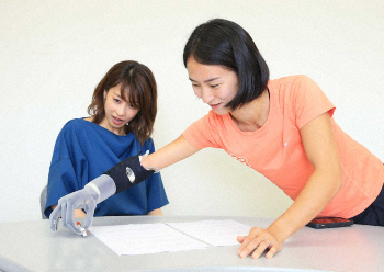 「競技では別の義手で走りますが、筋電義手をつけ始めました。生まれた時から腕がなかったのでこんなに重いんだと思いました」