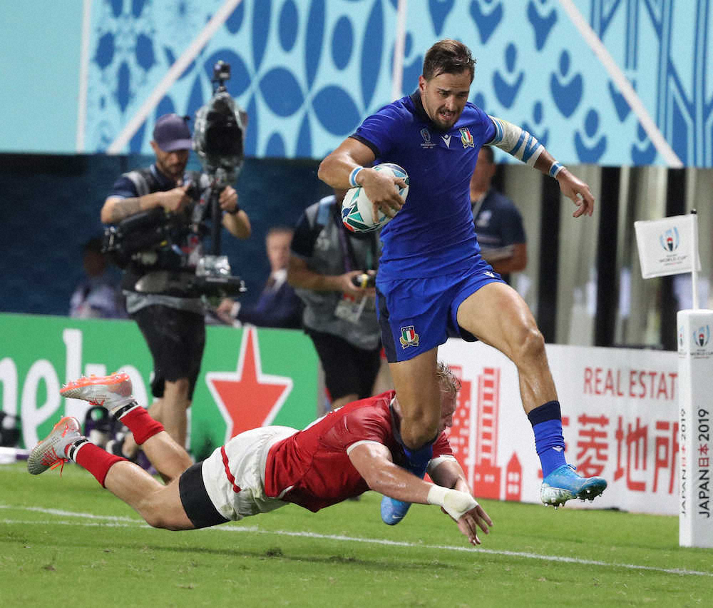 ラグビーW杯が九州でも始まった。1次リーグB組のイタリア対カナダが福岡市の東平尾公園博多の森球技場であり、7トライをあげたイタリアが48―7で勝利し2連勝。ナミビア戦に続き、2試合連続でボーナスポイントを獲得した。