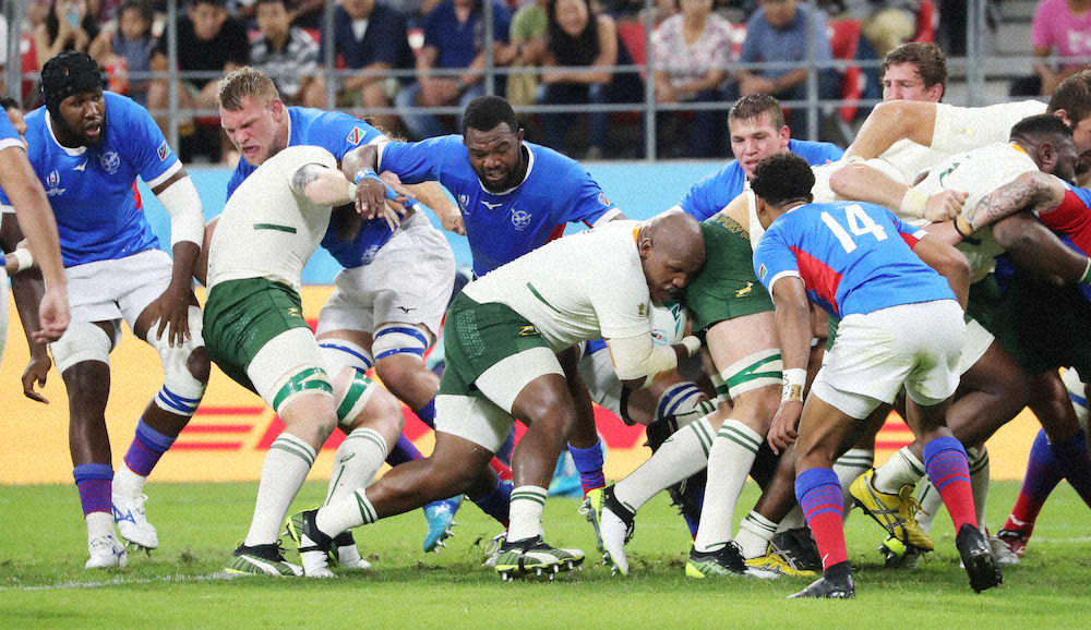 ナミビアは8年前のW杯で0―87で大敗した南アフリカに今回も力の差を見せつけられた。スクラムを押され、連続攻撃を防ぐことができなかった。劣勢の中でも諦めないタックルを続け、観客席から拍手が起こる場面も。