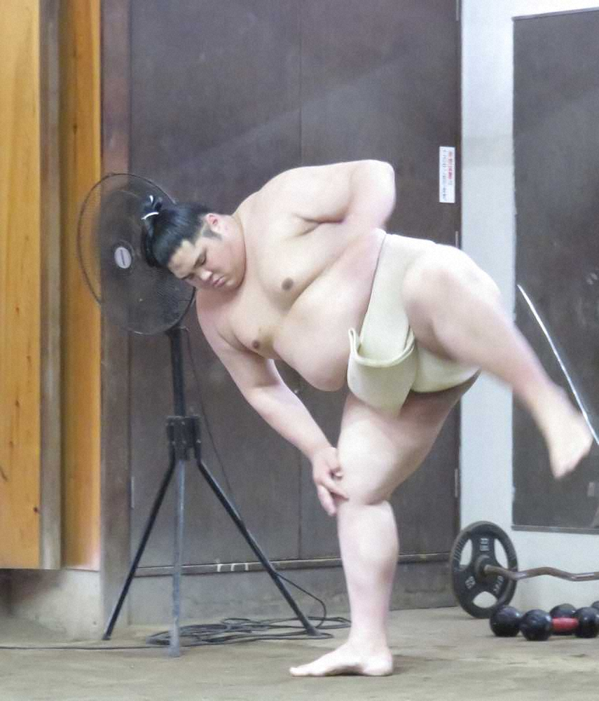 朝稽古で四股を踏む貴源治