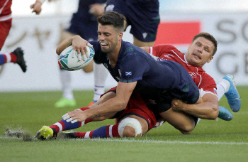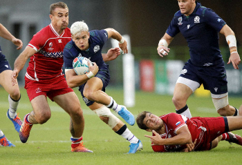 13日の1次リーグ最終戦(横浜)で日本と対戦する世界ランキング9位のスコットランドが同20位のロシアと対決。前半を21―0で終えた。