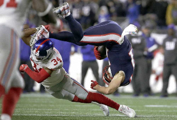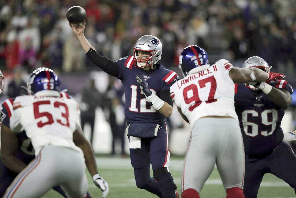 NFLは10日、マサチューセッツ州フォックスボロで第6週の1試合を行い、地元のペイトリオッツが35-14(前半21―14)でジャイアンツを下して4季ぶりの開幕6連勝。334ヤードを稼いだQBトム・ブレイディー(42)にパスによるTDはなかったが、第2Qと第4Qに「QBスニーク」からTDをマークしてチームを引っ張った。
