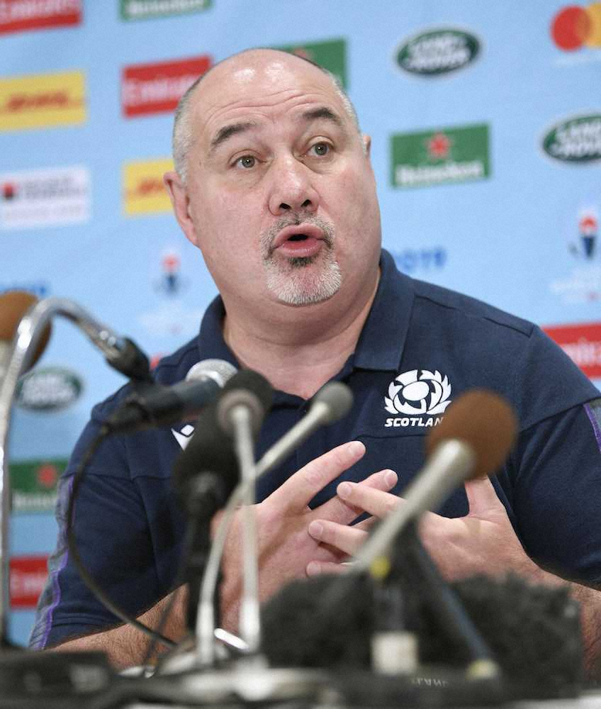 スコットランド協会のマーク・ドッドソンCEO(最高責任者)が会見し、台風19号の影響で中止の可能性がある日本戦について「開始を24時間遅らせてでもやりたい。会場は浜松でもどこでもやる」と訴えた。ニュージーランド戦中止で敗退が決まったイタリアに同情し、「勝ち抜きは試合で決めるべきだった」と主張。