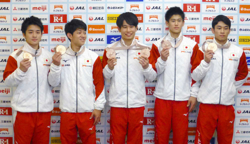 体操の世界選手権男子団体総合で銅メダルを獲得した日本代表が15日、開催地ドイツから成田空港に帰国した。