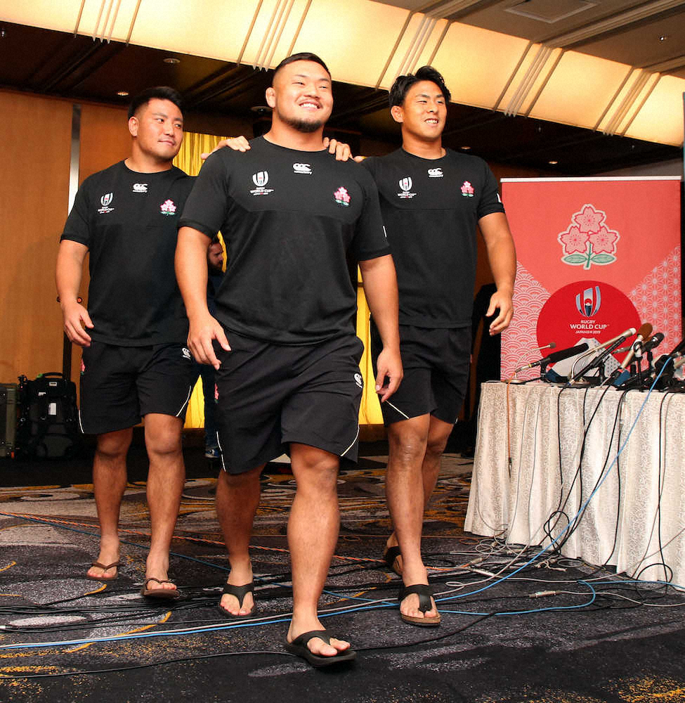 歴代最強のジャパンには、名脇役たちがいる。15日、会見場に現れたのはフランカー徳永祥尭(27=東芝)、フッカー北出卓也(27=サントリー)、プロップ木津悠輔(23=トヨタ自動車)。全員が1次リーグ4試合で出場機会のないFWのノンメンバーだ。選手への給水役「ウオーター・ボーイ」を務める徳永は「ノンメンバー全員が相手チームを分析してサポートしている。チームから認められている感じがあって、うれしい」と語る。