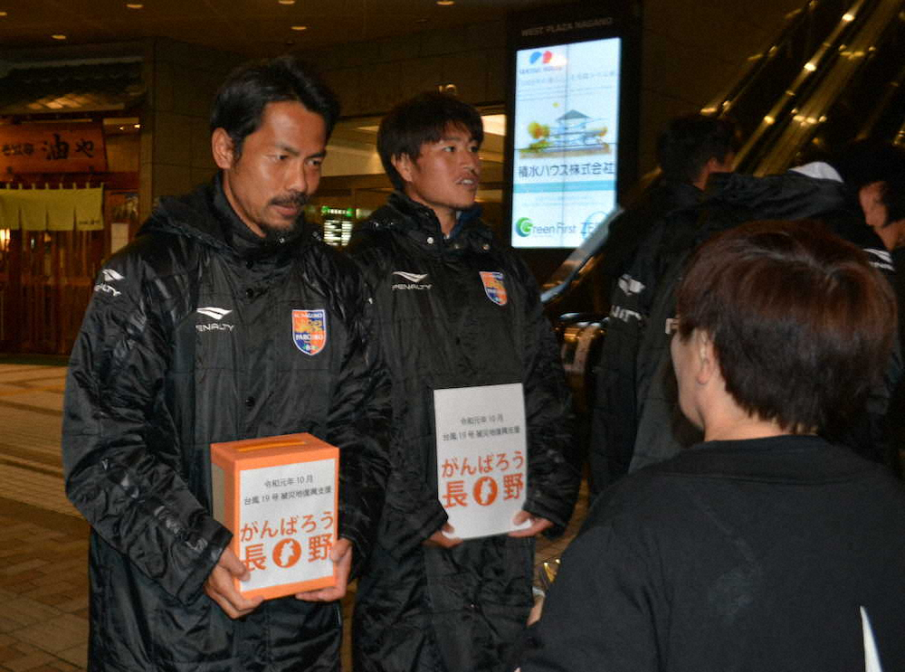 台風19号の被災者支援のため、長野県内のスポーツチームが17日に長野駅周辺で募金活動を行った。当初はJ3長野パルセイロやB2信州ブレイブウォリアーズ、F1ボアルース長野など長野市やその周辺の北信を拠点とするチームで計画されたが、中信からJ1松本山雅、南信からV1長野トライデンツも参加。リオデジャネイロ五輪シンクロナイズドスイミングのチームで銅メダルを獲得した箱山愛香さん(28)も個人参加で駆けつけ、総勢40人以上が募金を呼び掛けた。