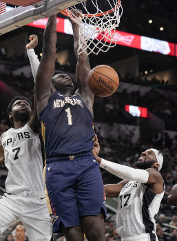 ウィリアムソンは2メートル1、129キロでパワーあふれるインサイドのプレーが武器。その一方で3点シュートを打てる能力もあり、プレシーズンの4試合では平均27・3分の出場で23・3得点、6・6リバウンドという文句なしの成績を残し、ペリカンズはここまで4戦全勝と不敗だった。