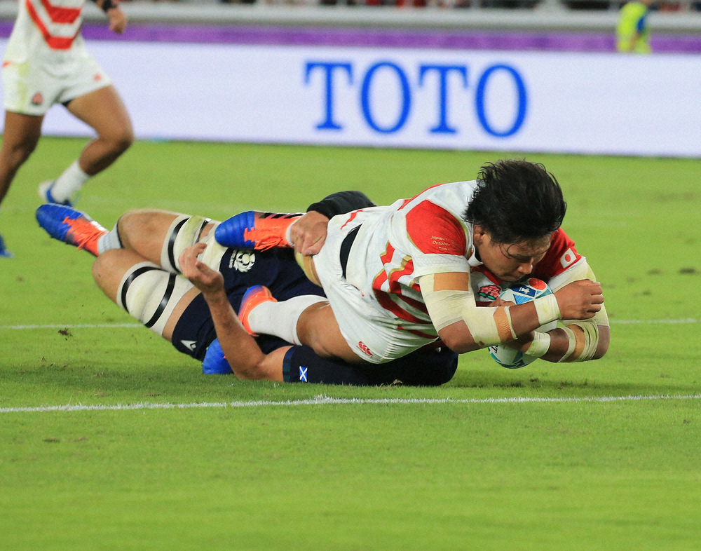 国際統括団体「ワールドラグビー」が選ぶ「1次リーグ・ベストトライ」の2位に輝いた、スコットランド戦の3連続オフロードパス(タックルを受けながらつなぐ)のトライはゴール下。要は、ほとんどのトライが、崩し切って奪っているのだ。