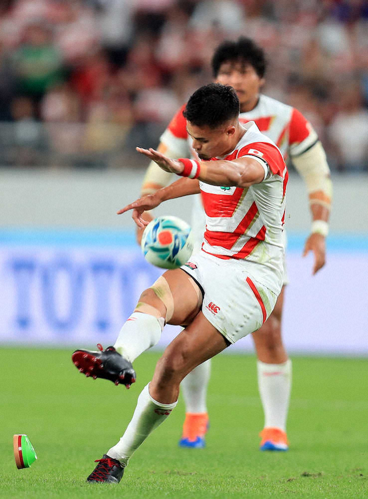 <日本・南アフリカ>前半、PGを決める田村(撮影・久冨木 修)