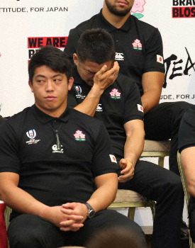 会見冒頭からジョセフHCのあいさつを聞きながら、感情を抑えきれず、涙をしきりにぬぐっていた田中。今後のラグビー界について質問され「2011年から日本代表がすごく強くなって、ファンの方からも応援されるようになった。やっぱり1回で優勝をとれるような大会ではない。これから、皆がもっともっと努力して(プレーすることが必要)」と改めて世界の厳しさに触れた。