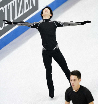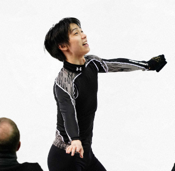 ▽10:00 SPの公式練習がスタート。羽生はお辞儀をし、4番目に右足からリンクへ入った。名前が読み上げられ、両手を広げて声援に応える。