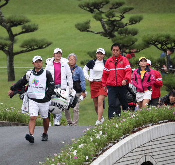 <マスターズGCレディース 第2日>16番、笑顔でセカンドショットへ向かう稲見萌寧(左から2人目)と渋野日向子(左から3人目)と勝みなみ(右) (撮影・平嶋 理子) Photo by スポニチ 稲見“強気”貫いて3打差2位 逆転Vへ「逆に良いんじゃないかな」 ギャラリーで見る この記事のフォト 2019年10月26日の画像一覧 もっと見る 2019年10月26日の画像をもっと見る