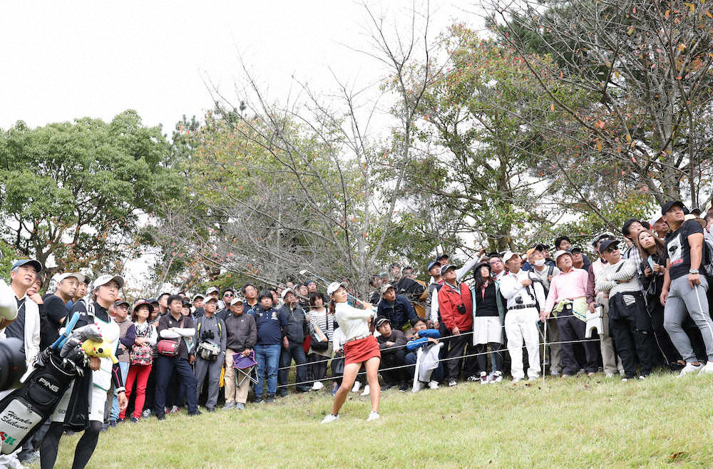 渋野は第3ラウンドを4バーディー、3ボギーの71と伸ばしきれず、通算6アンダーの9位。「なかなか笑えるような内容じゃなかったですね。伸ばしたかったので、1個だけというのは悔しい」と心境を明かした。