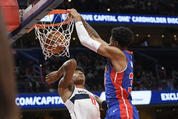 ウィザーズは3連敗中で1勝4敗。ホームではこれが3戦目となる。ピストンズはここまで3勝4敗。3試合連続で20得点+20リバウンド以上をマークしているセンターのアンドレ・ドラモンド(26)は前半で9得点、11リバウンドを稼いでいる。