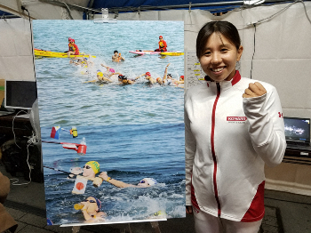 来年の東京五輪・パラリンピックの開催まで300日を切り、気運醸成イベントとして新橋の愛宕一之部連合町会、港区、富士通が共催したもの。会場では、フェンシングやボッチャ、マラソン、マラソンスイミングに関する展示や体験コーナーのほか、同区が連携する福島県いわき市などの飲食コーナーがブースを出展した。