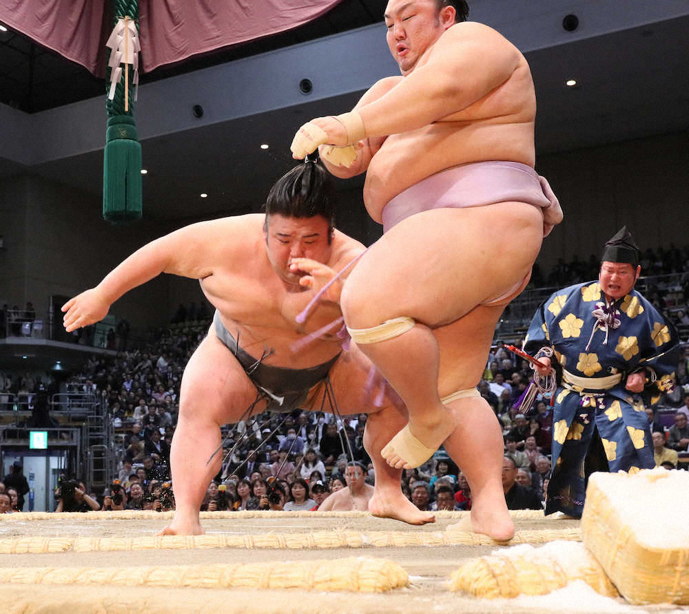 立ち合いのもろ手突きをはね上げて圧力をかけ、突っ張って粘る相手を追い詰めた。最後まで休まず攻めて4連勝。相手の攻撃で左目が充血していたが、「眼球が痛いから手が入ったと思う。そういう世界だから全く問題ない」と強調した。白星を伸ばす中で、安定感が増してきている。勝負の終盤戦へ「自分が最高のものをして負けたら仕方ない」と集中していた。