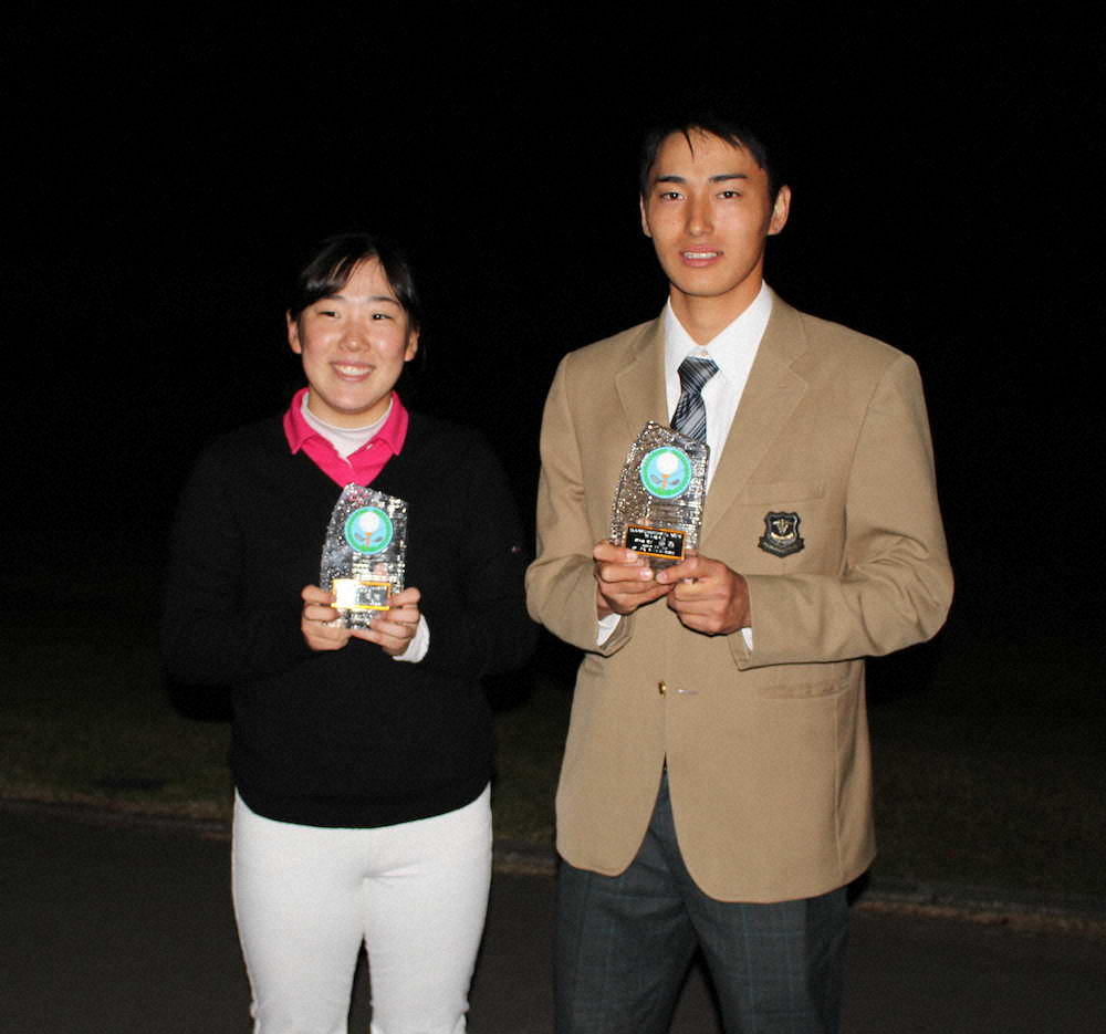女子は2オーバー、74で5人が並びプレーオフに突入。6ホール目に岩切美空(宮崎日大2年)が決着をつけて初優勝した。男女の優勝者には全国高校・中学校選抜ゴルフマッチプレー(12月9日開幕、沖縄・カヌチャ)の出場権が与えられた。