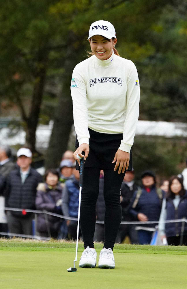 ▼渋野日向子 パッティングが全然ダメだったんですけど、そのダメだった距離(3メートル)が17番で入って最後(18番)はショットで(バーディーを)取れていい終わり方だったと思います。