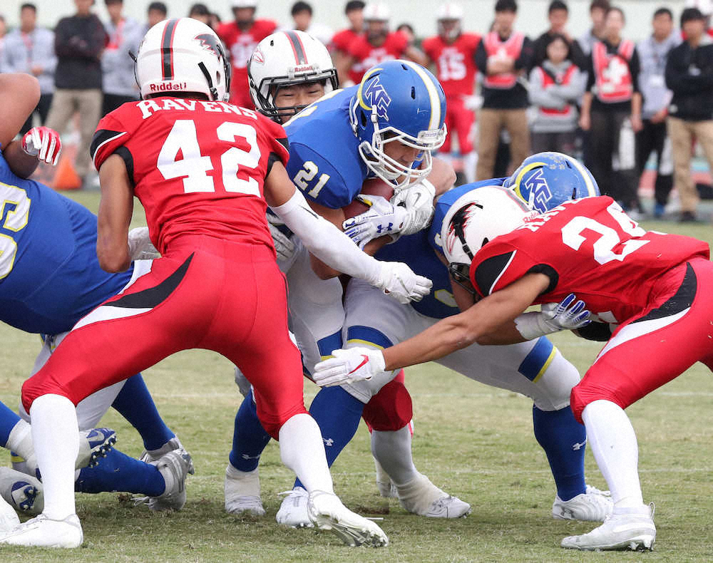強い関学大が宿敵への挑戦権を得た。リーグ戦で2点差勝利と苦しんだ神大との準決勝。オフェンスが奮起し、先に試合の主導権を握った。