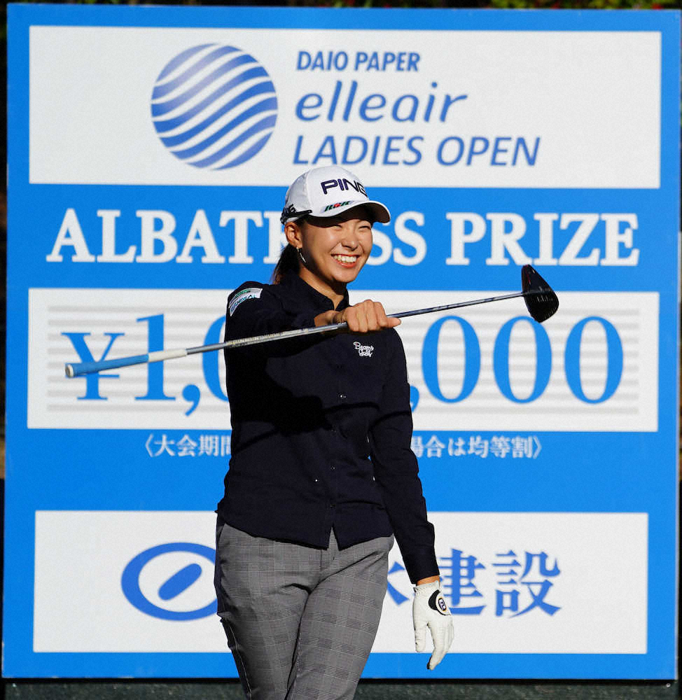 真っすぐな打ち下ろしの17番パー5(510ヤード)。思い切り叩いた打球はフェアウエーを突き抜けて335ヤード先のラフでようやく止まった。「予想外でした。ボールないなあって。アハハ」。第2打は残り175ヤードで使用クラブは何と5I。ピン右手前から12メートルのイーグルパットを「自分よりちょっと背が大きいくらい」と2メートル近くオーバーさせて一瞬、ヒヤッとしたが、これをきっちり沈めてバーディー。大会初日に“素ダボ”(ミスなしのダブルボギー)を叩いたホールで見事リベンジ。「今日はヘマをせんかった」と66の好スコアに笑顔を見せた。