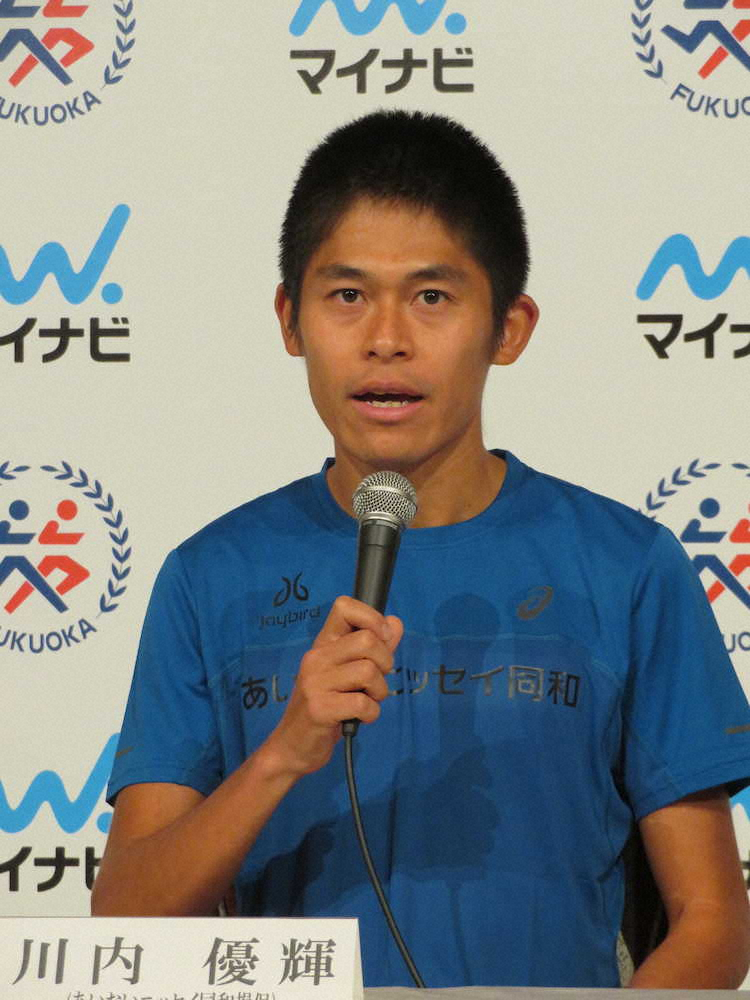 福岡国際は今大会で10度目の出場になるといい「全体の10分の1は福岡に出ているんですね」と感慨深げ。練習中に多くの市民から声を掛けられたといい「今年も川内が来たと(福岡の)冬の風物詩のような感じになっている」と笑いを誘った。