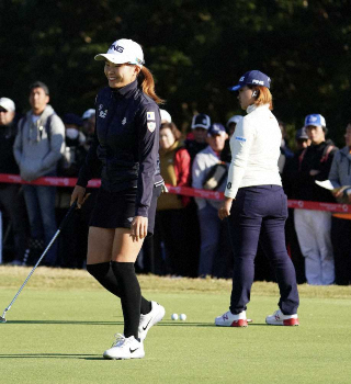 【16番 171ヤード パー3】ティーショットを右に外し、2打目が寄らず、2・5メートルの下りのパットを沈めてパー。イ・ボミがボギーで単独首位に