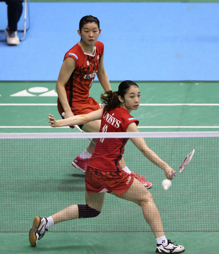 タカマツは第1ゲームこそ2人の連係が合わずに苦戦を強いられたが、第2ゲーム中盤では怒とうの12連続得点。同じ所属の後輩ペアを41分で圧倒し、3年ぶりの戴冠に前進した。試合後、高橋は「昨日よりいいコンビネーションだった」とうなずいた。