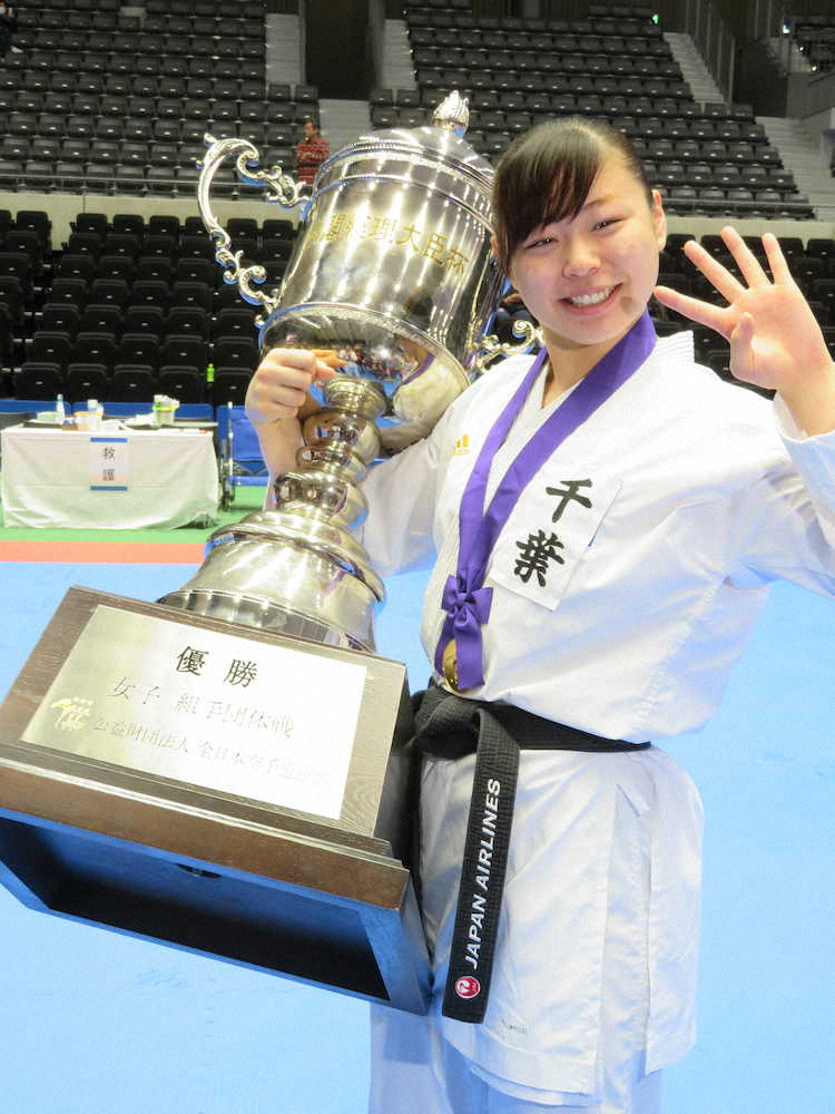 「団体優勝は時の運もあるのでうれしい。時差ぼけはしんどかった」と話した。五輪代表選考が佳境を迎える中、組手は有力選手がこぞって欠場。そんな中で意地を見せ、5連覇を狙う8日の個人戦に向け「勝ち抜く大切さを学びたい」と語った。