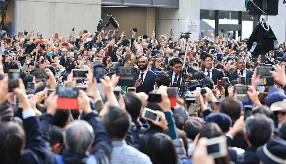 開始前から通りはぎっしりと人で埋まり、桜のジャージー姿のファンらが詰めかけた。パレードはリーチ・マイケル主将が「ワールドカップの応援ありがとうございました。スタッフや選手だけでなく、日本中がONE TEAMになったことがすごくうれしいです」とあいさつした後、開始予定の正午から15分ほど遅れてスタート。スーツ姿の選手らが徒歩で沿道を埋めたファンらに手を振って応えた。