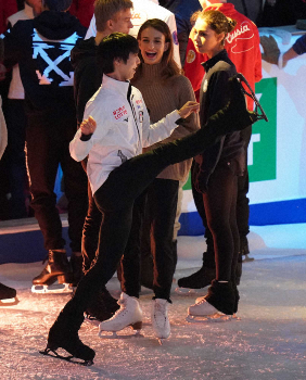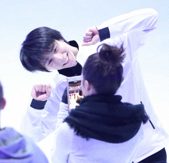 ▽10:18 ゲストの子どもスケーターに写真撮影をお願いされ、写真を撮る。隋文静、韓聡組とも記念撮影。