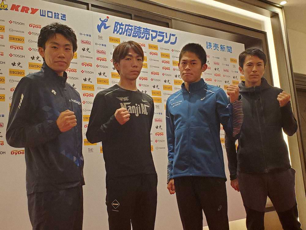14日の前日会見で「ただ100回走るのなら普通の人でもやっている」と話し、「今年は不調だったので、50回記念の防府で3連覇を目指したい気持ちの方が強い」と抱負を述べた。10月の世界選手権(ドーハ)で29位、1日の福岡国際も12位に終わったが、「福岡で良くないと防府が良い傾向が続いている」と明かし、「タイムより優勝を狙うレース」と意気込んだ。