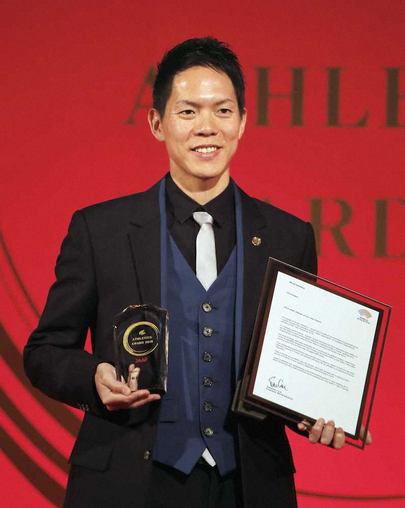日本陸連の年間表彰式が都内で行われ、最優秀選手賞に今秋の世界選手権男子50キロ競歩で日本人初の金メダルを獲得した鈴木雄介(31=富士通)が初選出された。