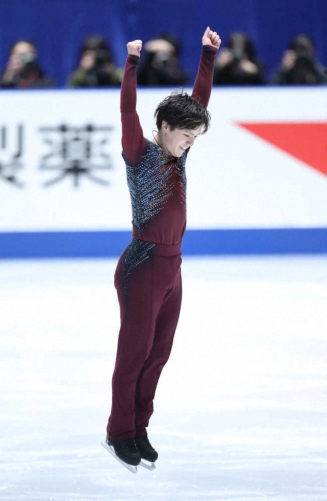 完全復活が見えた。3連覇中の宇野昌磨(22=トヨタ自動車)は冒頭に4回転フリップを決めると、トーループの4―2回転、トリプルアクセルも成功。「ほんとに細かい気持ちとか関係なしに、うれしい」。演技を終えると力強く右拳を振り下ろす納得の2分50秒。国際大会の自己ベスト104・15点を上回る105・71点で、羽生と5・01点差の2位につけた。