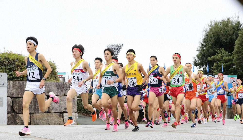 全国高校駅伝は22日、京都市のたけびしスタジアム京都発着のコースで行われた。第70回の男子(7区間、42・195キロ)の1区(10キロ)では、世界クロスカントリー選手権大会U20の部・日本代表の佐藤一世(千葉・八千代松陰3年)が28分48秒で区間賞を獲得した。
