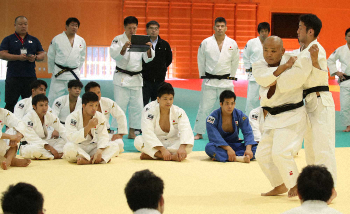 柔道日本男子は24日、東京都北区の味の素ナショナルトレーニングセンターで強化合宿を公開し、1964年の東京五輪中量級で金メダルを獲得した岡野功氏(75)の技術講習を受けた。“昭和の三四郎”の異名を取った同氏は、約1時間半にわたり「崩し」の技術や五輪への心構えを指導。講習後、マンツーマンで会話を交わした73キロ級の大野将平(27=旭化成)は「圧倒的な達人感のある方。私の柔道の最終地点」と自身にとって理想像であることを明かした。