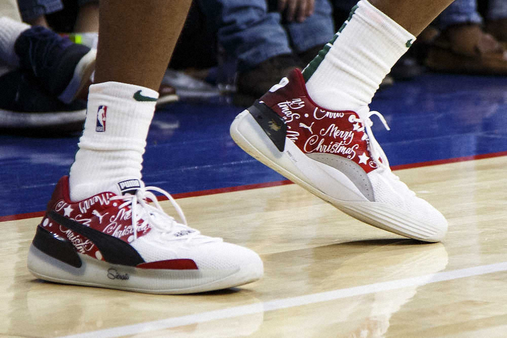 バックスのブラウンが履いたクリスマス仕様のシューズ(AP)