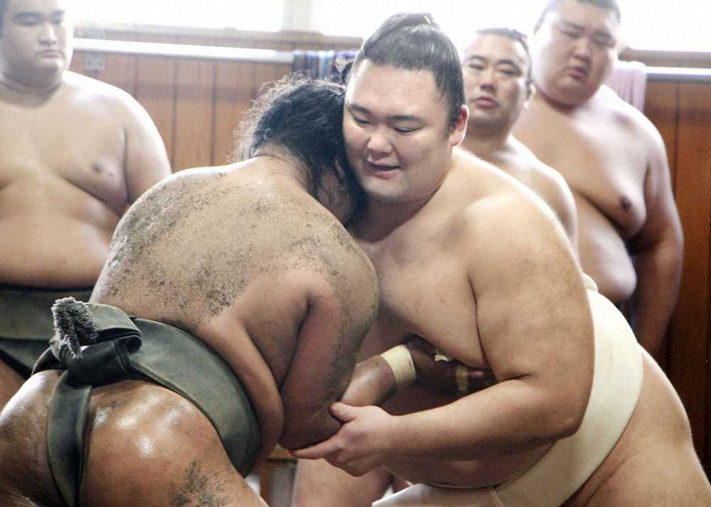 大相撲の新関脇・朝乃山が29日、東京都墨田区の高砂部屋で今年最後の稽古を行った。
