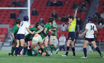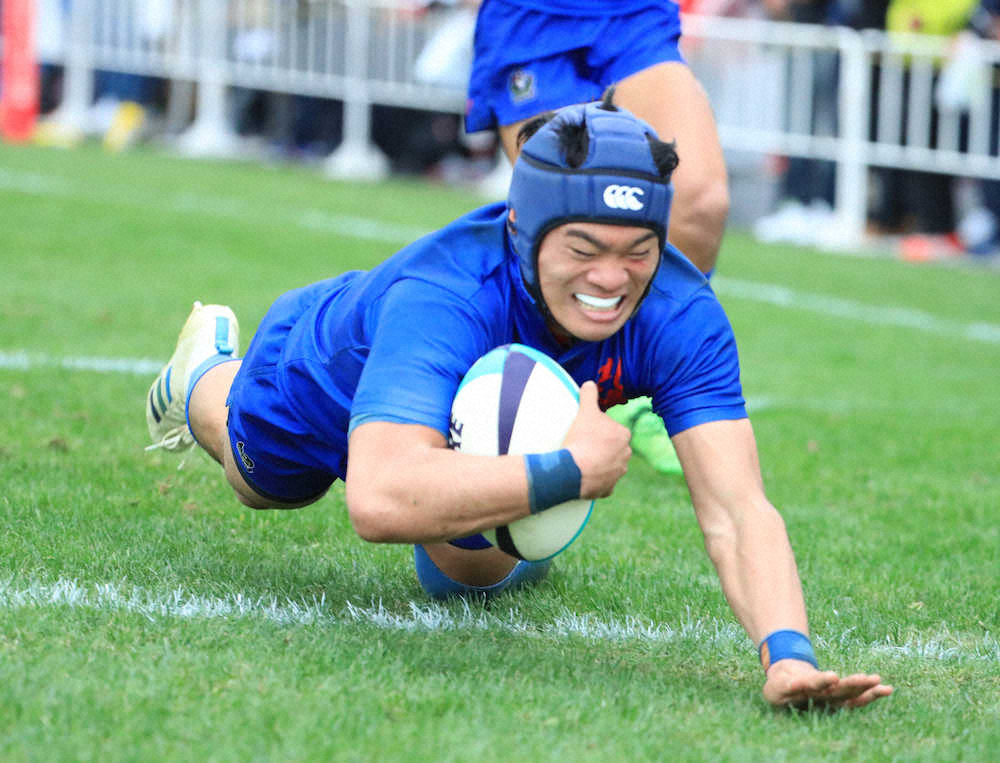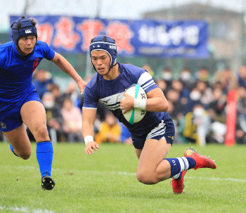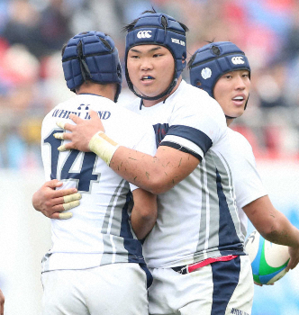 試合終了間際にCTB岡崎主将が相手DF2人を引きつけて左へパス。これを受けたFB山口が左隅にトライを決めた。幼稚園時代から一緒にだ円形のボールを追い掛けてきた2人のホットラインで優勝候補の筆頭に一矢報いた。「力負けはしましたけど、最高の仲間と花園でプレーできて良かった」と岡崎主将はグッと涙をこらえた。