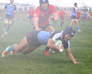 <桐蔭学園・長崎北陽台>後半30分、長崎北陽台・山口はトライを挙げ一矢報いる(撮影・井垣 忠夫)