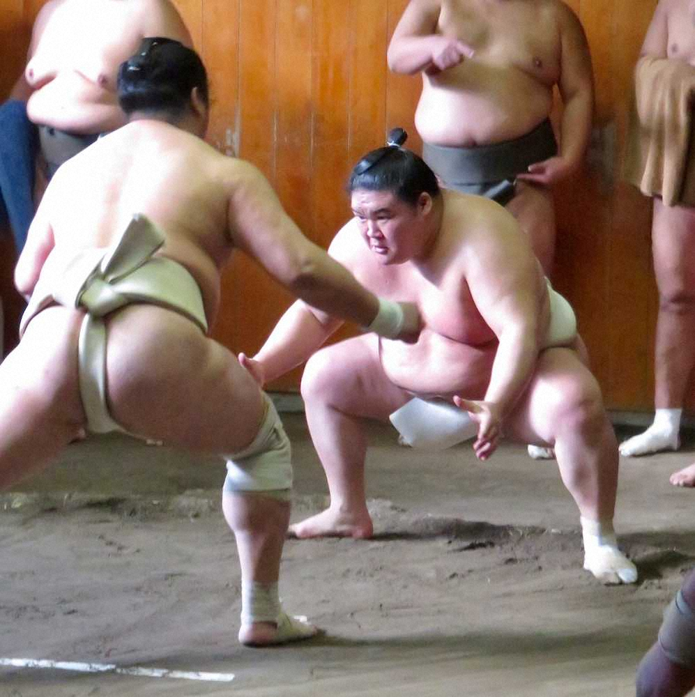 関脇だった九州場所で6勝9敗と負け越し、17年初場所以来、18場所ぶりの平幕となる御嶽海(27=出羽海部屋)は関取衆との申し合いで、平幕の妙義龍、東龍、十両の美ノ海と9番取って4勝5敗だった。「体をしっかり動かせるか」をテーマに土俵に上がったが「体が重かった。動けないね」と本調子ではなかった。