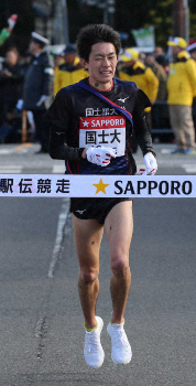 国士舘大2区のビンセントが1時間6分46秒の区間4位と快走し、想定の範囲内で5区の鼡田(ねずみだ)につないだ。