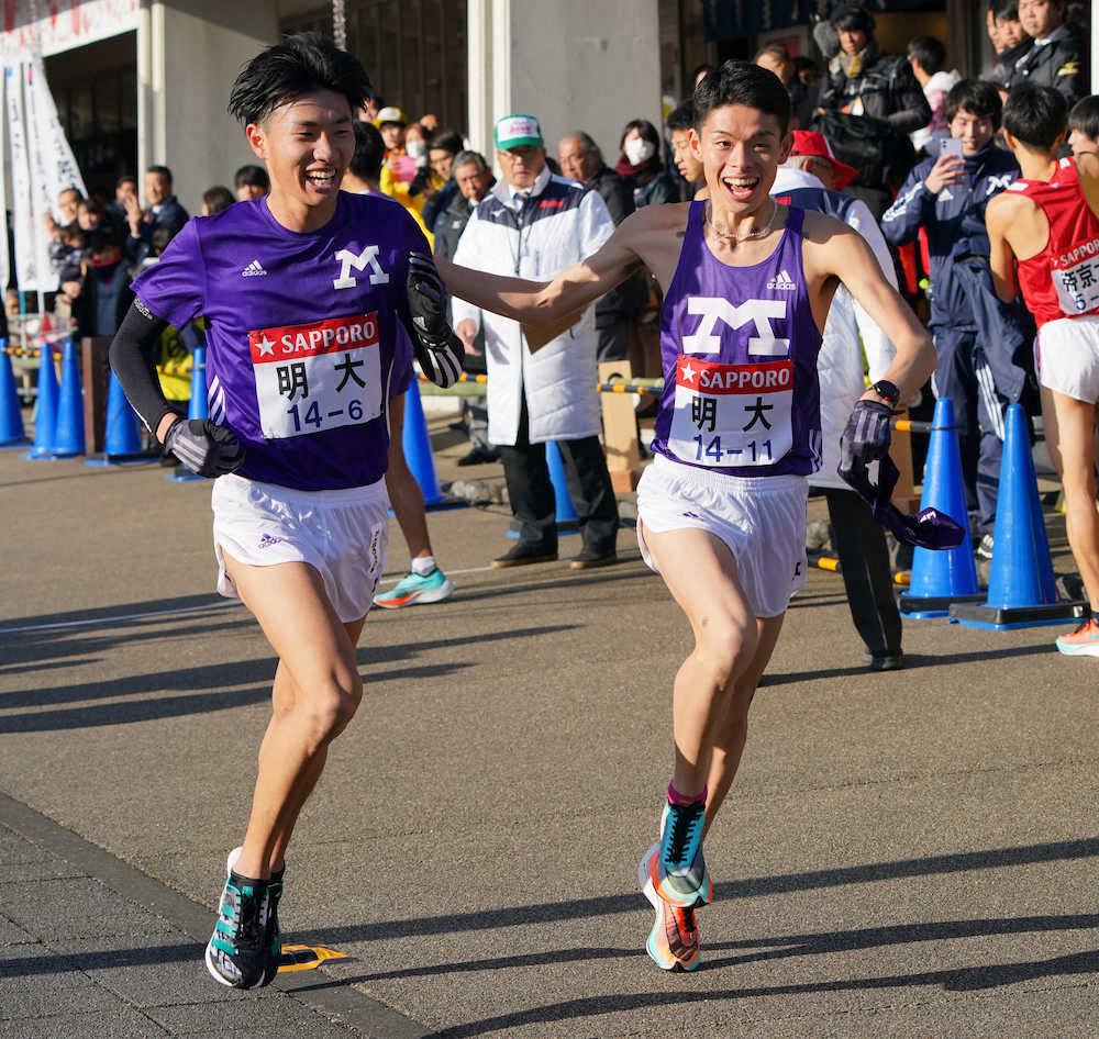 5位でたすきを受けると前半から快調なペースでラップを刻み、区間新の1時間1分40秒。体調は100%ではなかったが、主将の責任を果たし「4年間駅伝に苦しんだので、最後の年に笑顔で終われるのはうれしい」と安堵(あんど)の表情を浮かべた。