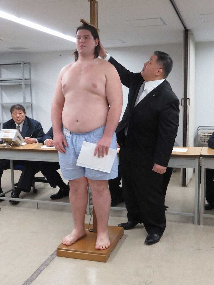 18年11月に来日し、約1年の研修を経ての受検に「うれしいです」とたどたどしい日本語で答えた。合格すれば同国初の力士となり、興行ビザ取得後に初土俵となる。入間川部屋の若藤親方(元幕内・皇司)は「力も強いし“ミニ把瑠都”といった感じ」と期待する。目標を聞かれると「横綱」と即答した。
