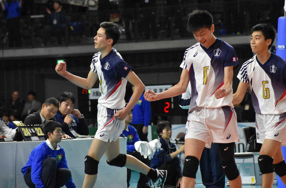 バレーボール全日本高校選手権第3日は7日、東京・武蔵野の森総合スポーツプラザで準々決勝までが行われ、男子は6年ぶり12回目の出場となった東山(京都)が東福岡を2―0で下し、初の4強入りを決めた。