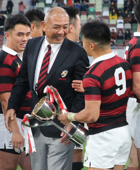 昨年度の花園に79大会ぶりの出場を果たした早実で主将を務めた昌彦は、大学で厳しい世間の目にさらされた。昨年8月、対抗戦の開幕戦でデビューも「初めはコネだろうという声も聞こえてきた」。反論はグラウンドで体現するしかない。前半39分のトライは力強い突破で中央へ飛び込み「1年で優勝できた。父を超えられたかな」と笑った。