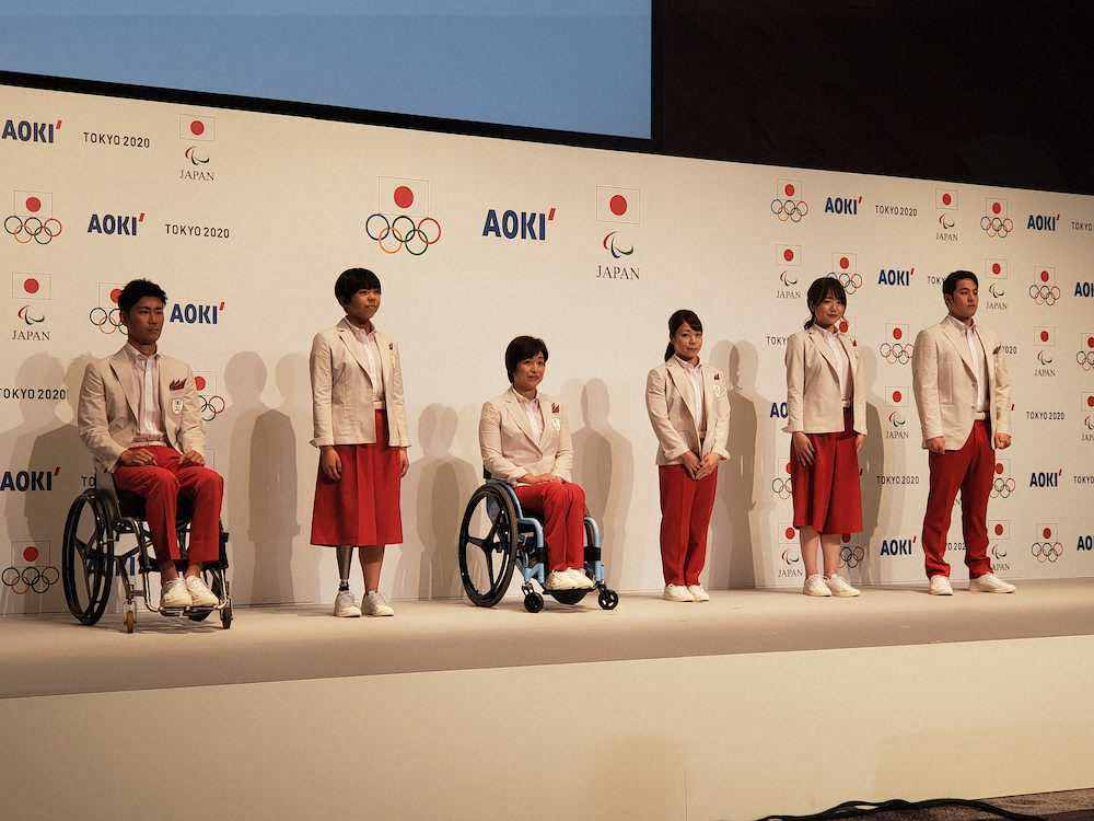 東京五輪・パラリンピック日本選手団の開会式と式典用の公式服装が23日、都内のホテルで発表された。いずれも紳士服大手のAOKIが製作し、五輪とパラリンピックの選手が初めて同じデザインの服を着用する。