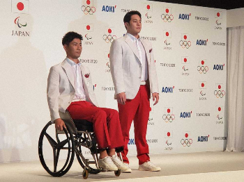 また、式典用の公式服装は「力強く爽やかなフォーマリティー」をテーマに製作。光沢のある紺色のジャケットに白のボトムを合わせ、こちらも可動性と通気性を高めた。AOKIホールディングスの青木擴憲代表取締役会長は、過去大会の2倍となる約1600人の両大会選手団のため、全国から選抜されたスタイリスト300人体制で採寸にあたることを明かした。