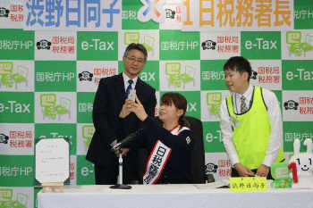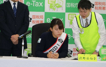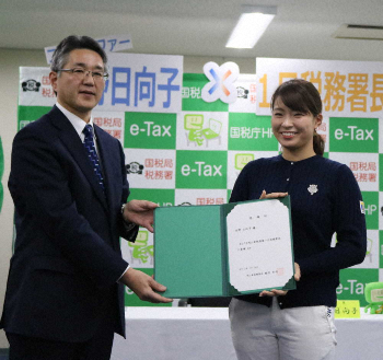 女子ゴルフの渋野日向子(21=RSK山陽放送)が24日、地元・岡山市の岡山東税務署で一日税務署長を務め、スマートフォンによる確定申告をPRした。
