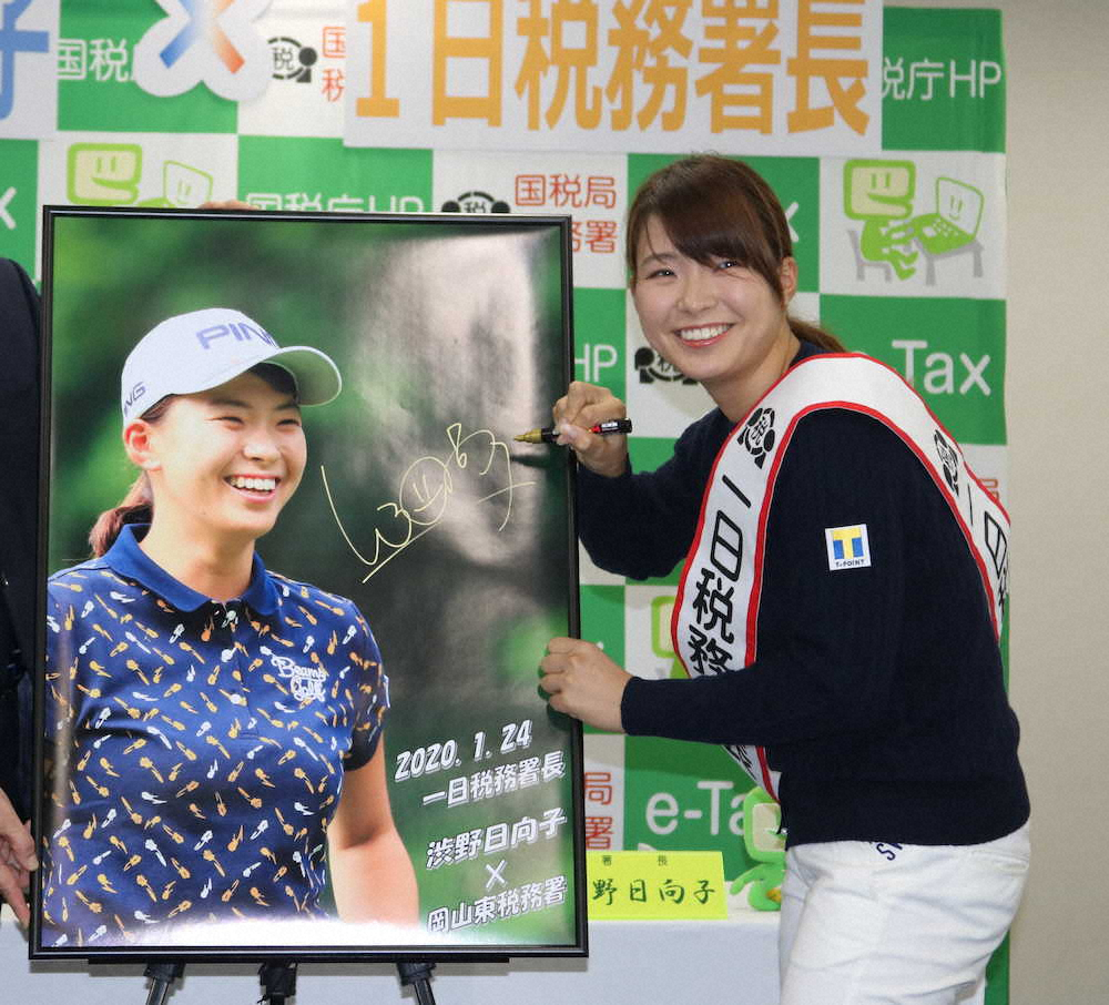 渋野日向子が一日税務署長 確定申告に悲鳴「もう、手が付けられないです」